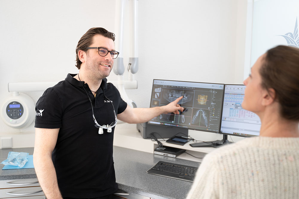 Mit 3D-Röntgen, abformfreier Mundvermessung und navigierter Implantation planen wir Ihr Implantat besonders exakt und schonend. Dank unseres voll digitalen Workflows sparen Sie Zeit, Aufwand und den klassischen Abdruck.